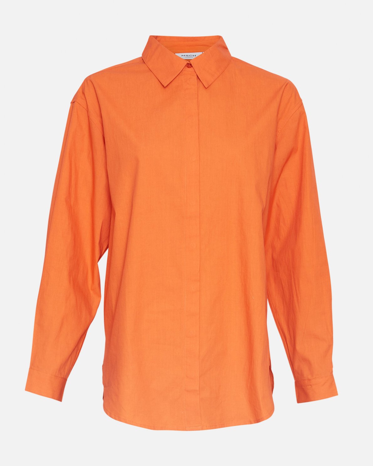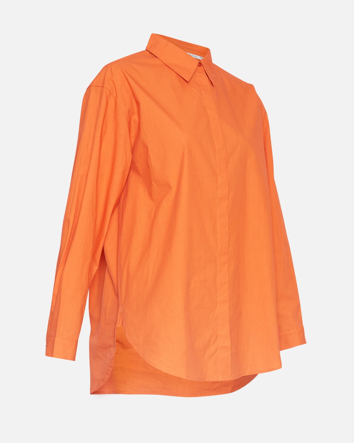 Skjorten har skjult knappelukning, med en lidt længere ryg en front.