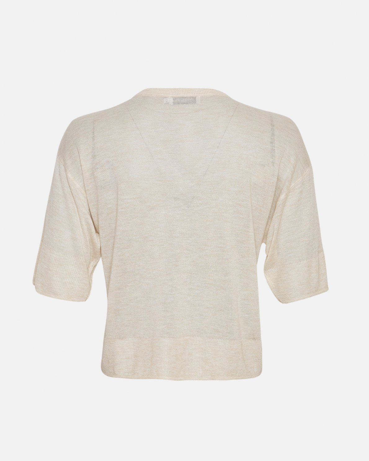 Denne lette striktrøje har v-halsudskæring, korte raglanærmer, lav skuldersøm og ribmønstre forneden. Style med dine yndlingsjeans eller et par cool sommershorts.