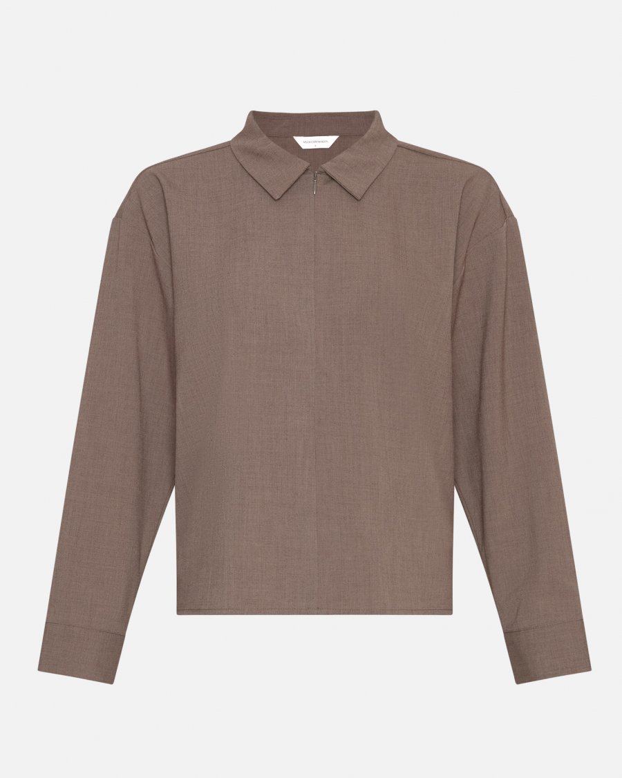 Vores Edrea top er en nyfortolkning af en klassis skjorte. De velkendte små knakker hele vejen igennem, er skiftet ud med en fin lille lynlås. Lynlåsen er som en "half zip" og går altså ikke hele vejen ned igennem toppen, dette tilføjer et hint af moderne mode, til en elelrs klasissk og enkelt top. Materialet er blødt, let og luftigt at have på.
