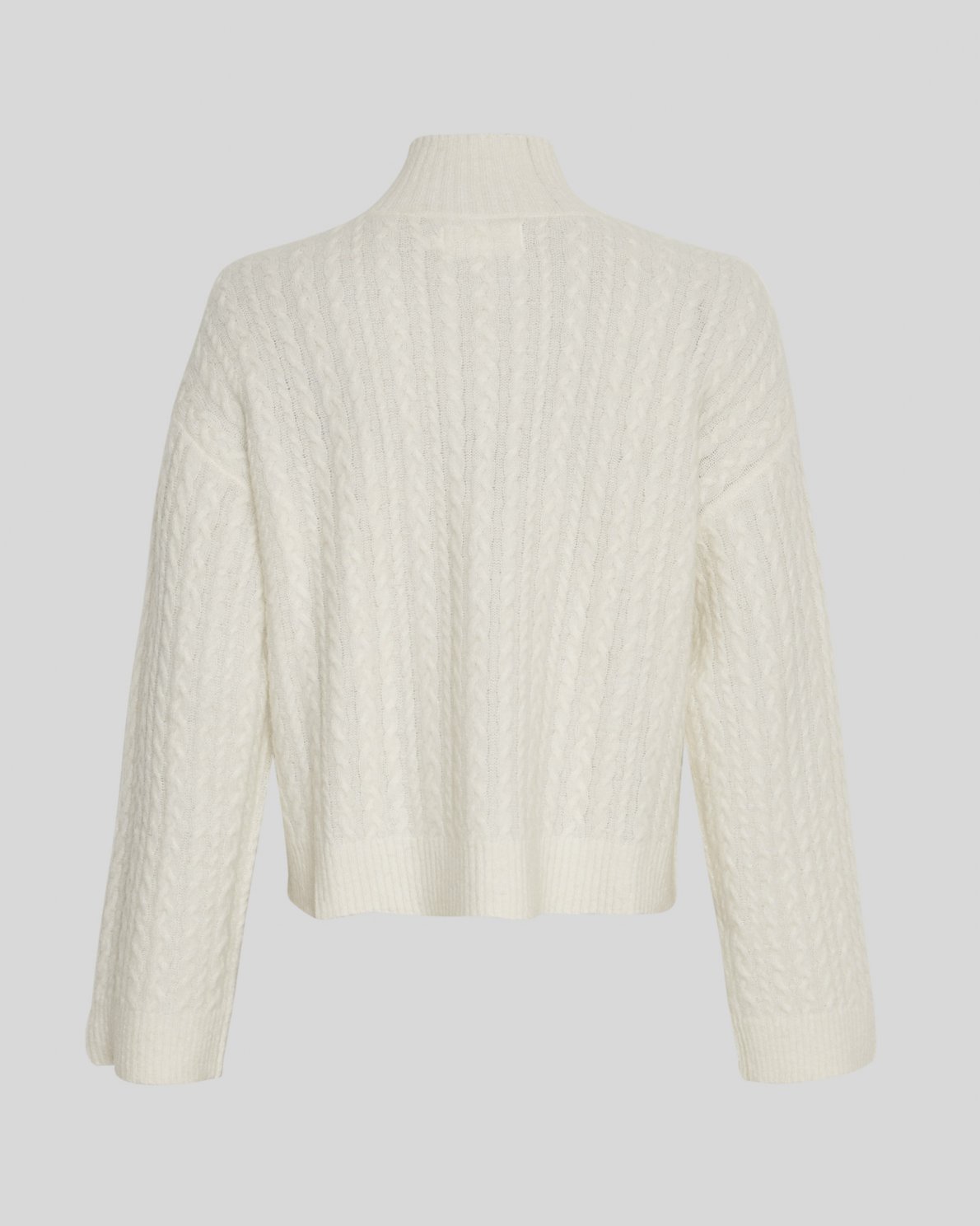 Den praktiske lynlåslukning giver dig mulighed for at justere dit look. Denne bløde strikcardigan har to lommer foran, der tilføjer et strejf af funktionalitet til outfittet, mens den stadig forbliver afslappet. Den høje hals giver ikke kun varme, men tilføjer også en blød fornemmelse mod din hud.