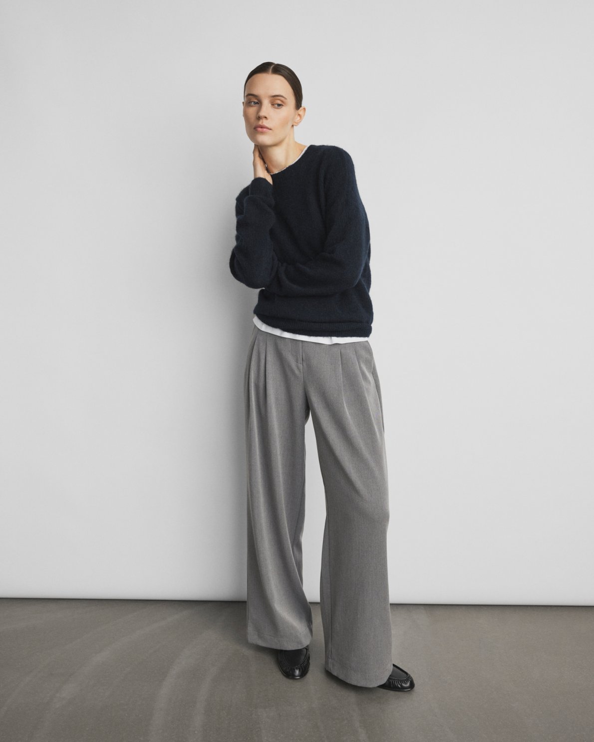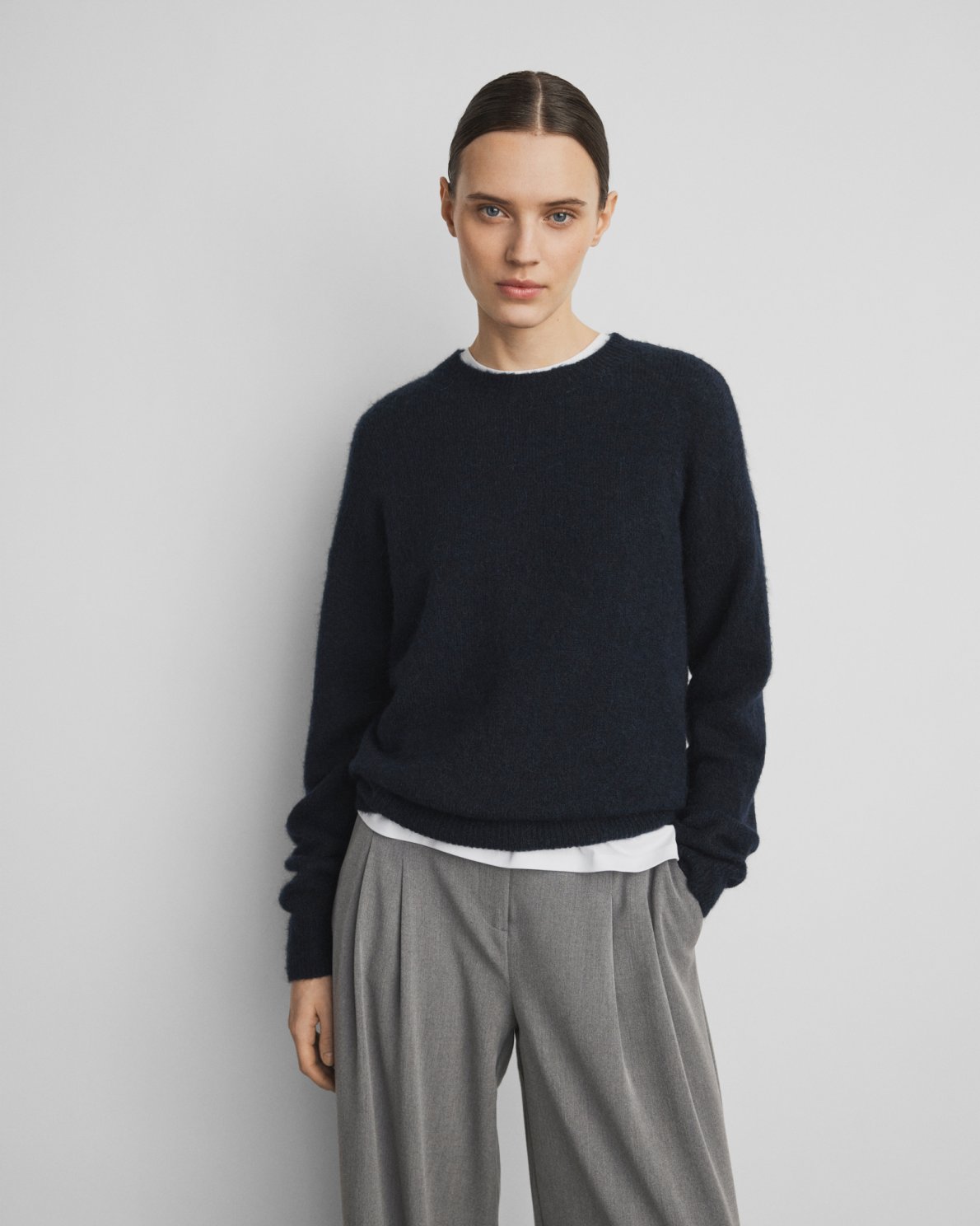 Strikket pullover i uld- og alpaka-blanding. Designet med rund hals, ribstrikkede kanter og let sænkede skuldre. Almindelig pasform.