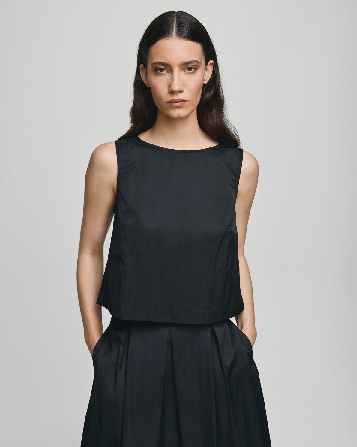Denne top har et ærmeløst design og boat neck udskæring, der tilbyder en blanding af tidløs elegance og komfort. Dens korte design giver en unik visuel, hvilket gør den ideel til at style med nederdele eller jeans med høj talje. Det giver en behagelig pasform, som er perfekt under blazere, men også til at bære det som et selvstændigt statement-stykke for et elegant look. Style den med matchende Javeria Camilla-nederdel for et komplet look, eller pynt dine yndlingsjeans for et feminint touch.