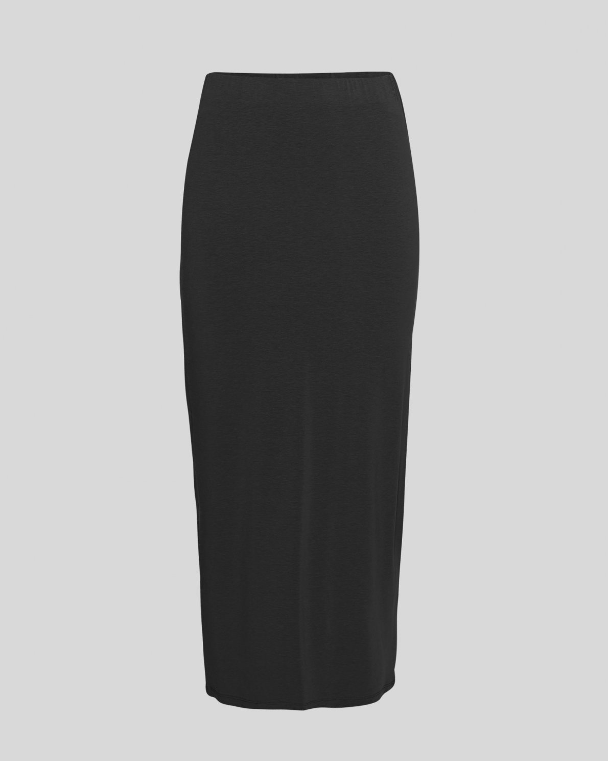 Denne nederdel er en basis, slim fit nederdel med elastik i taljen.