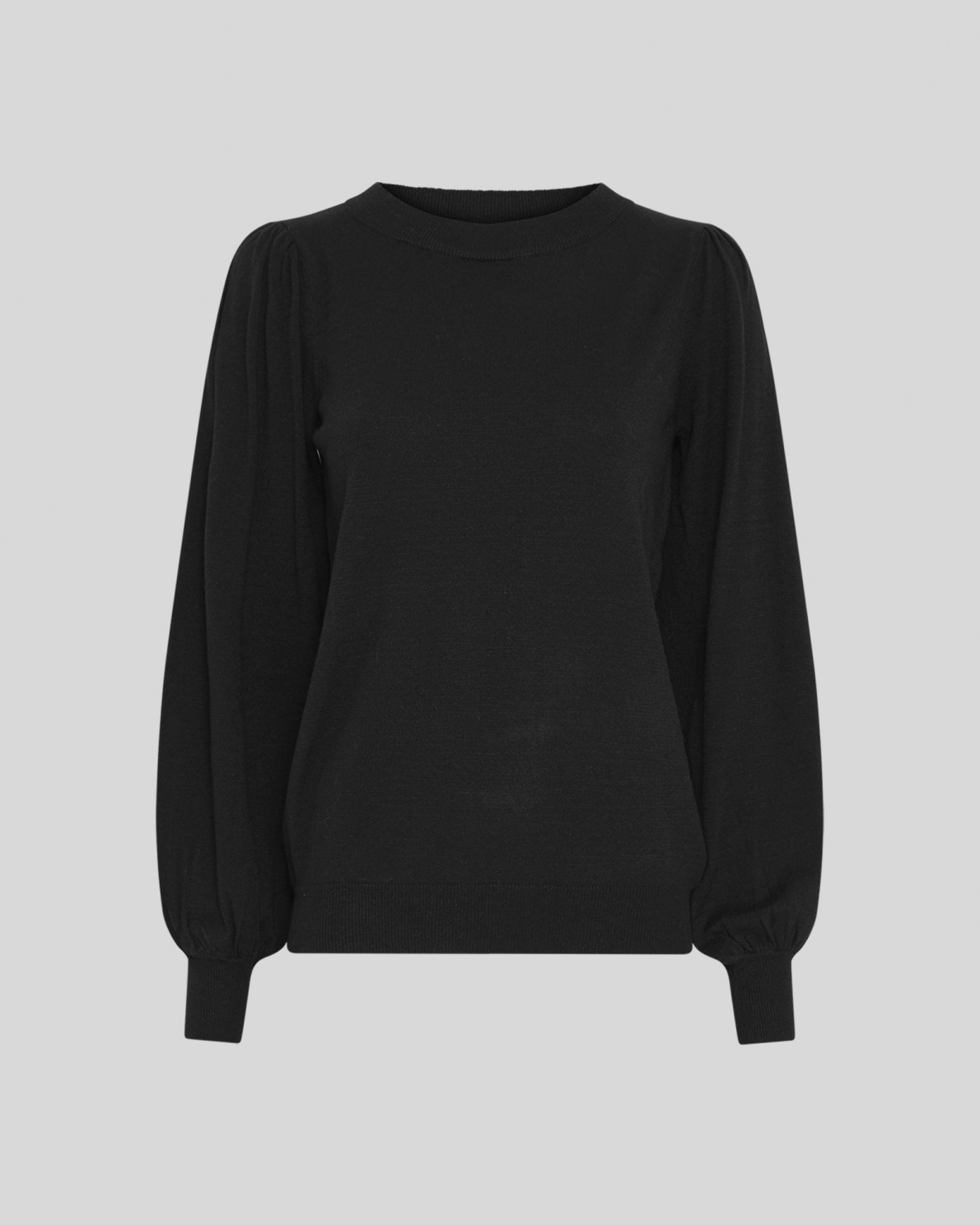 Let pullover med mock hals, strikket i blødt stof med ribkant forneden og pufærmer.