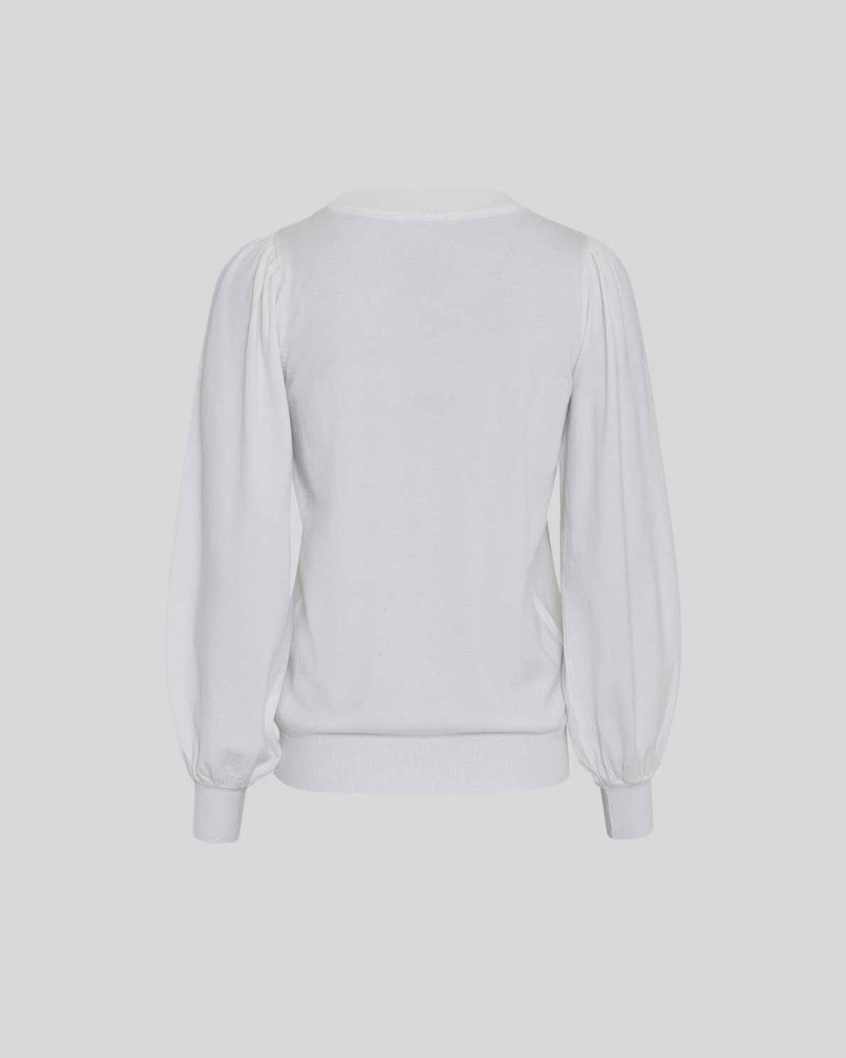 Let pullover med mock hals, strikket i blødt stof med ribkant forneden og pufærmer.