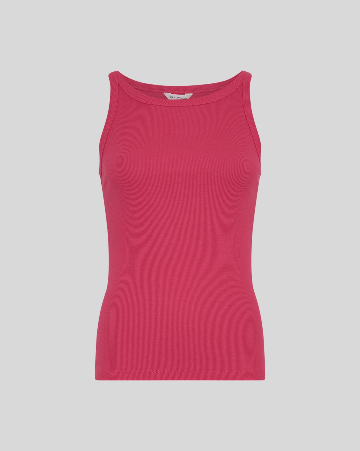 Ribstrikket tanktop i blød bomuldskvalitet med stretch. Designet med rund hals og ærmeløs silhuet. Slim fit.