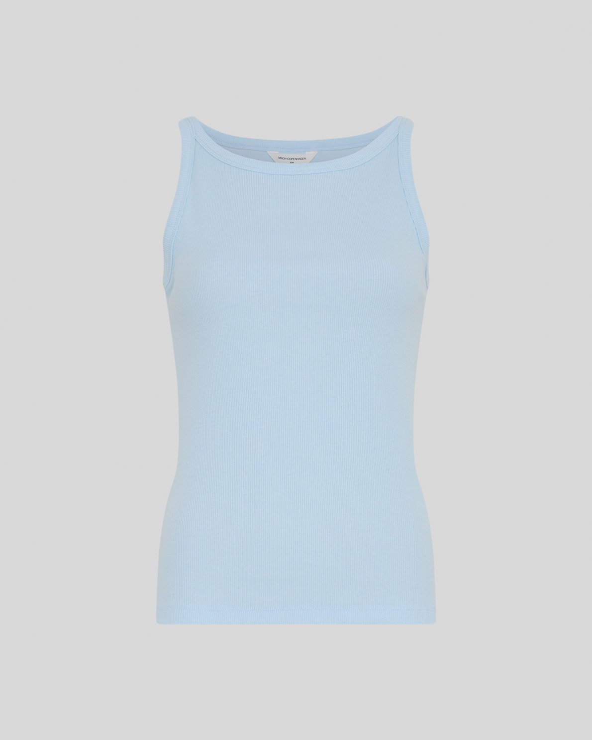 Ribstrikket tanktop i blød bomuldskvalitet med stretch. Designet med rund hals og ærmeløs silhuet. Slim fit.