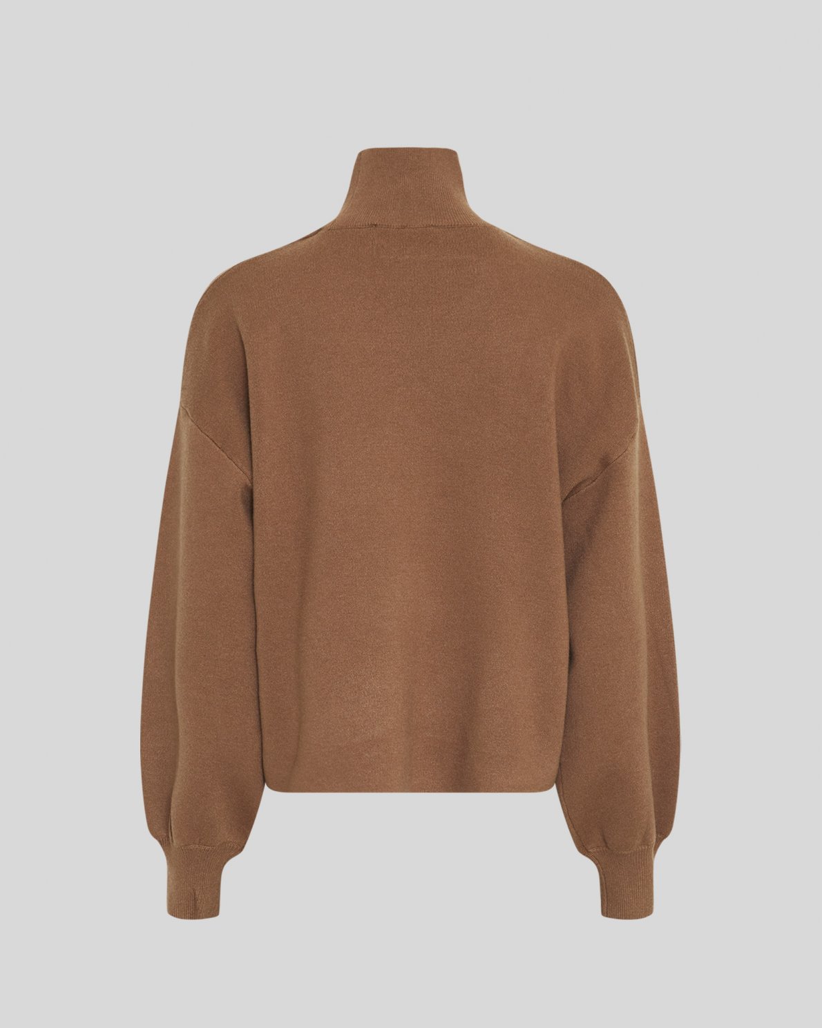 Vores "Mercy" strik kvalitet er en tyk kvalitet som udstråler luksuriøs både på baggrund af følelsen af materialet men også på grund af udseendet. Denne striktrøje er klassisk og tidsløs med dens høje hals og lidt løse ærmer. En striktr'øje som du vil bruge igen og igen.