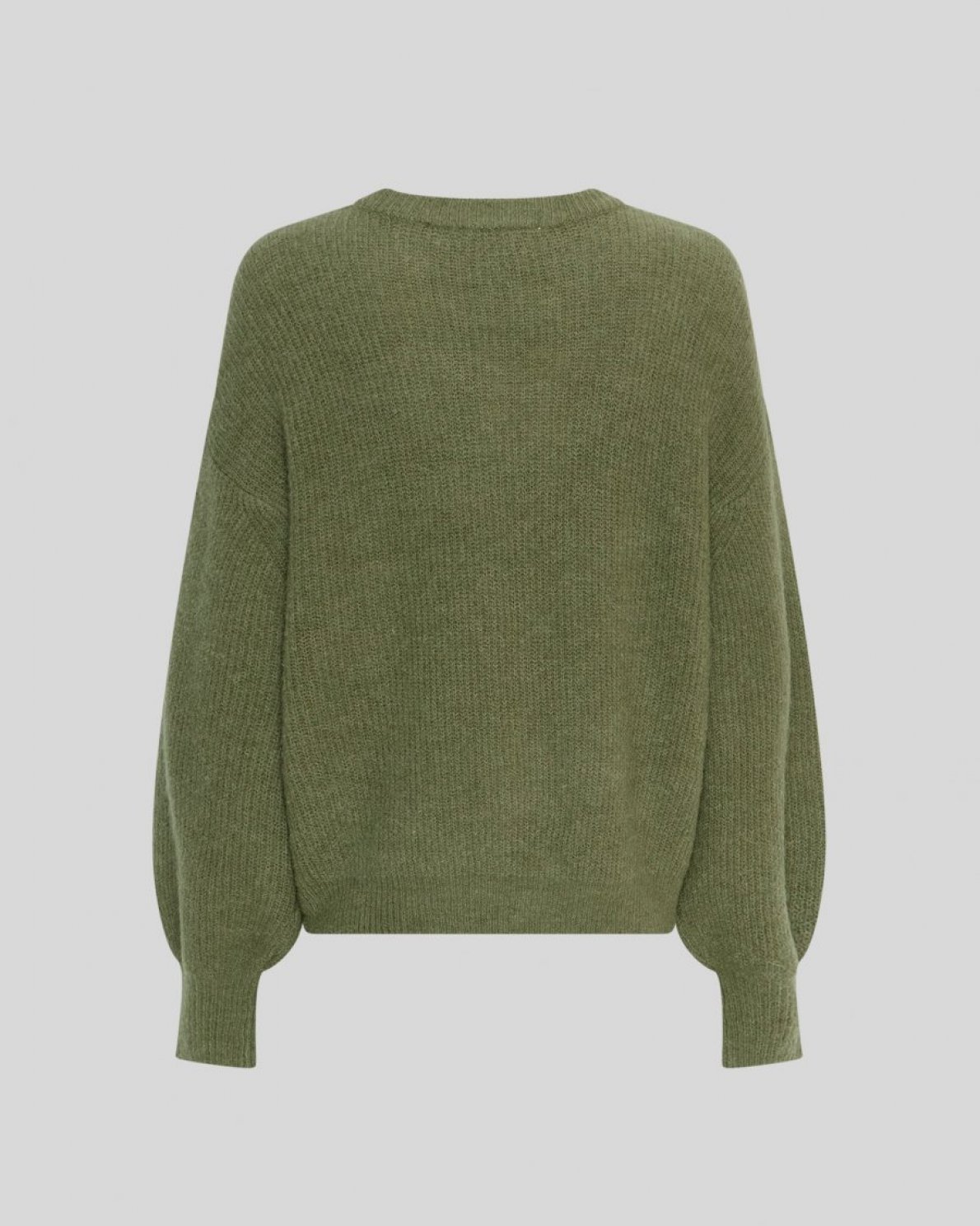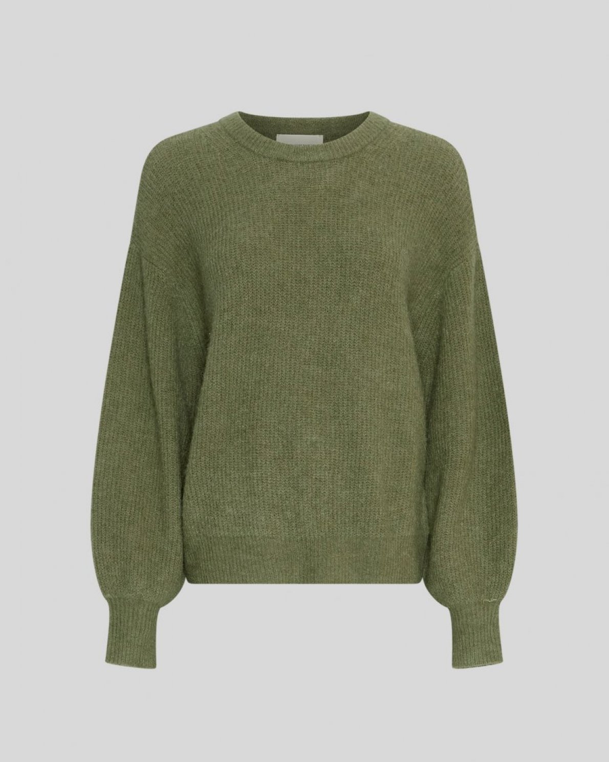 En tidsløs MSCH striktrøje. Lavet af uld og alpaca af høj kvalitet, er du garanteret en striktrøje som holder dig varm, men som samtidig stad er blød og er alsidig. Den oversized struktur gør den til den perfekte ledsager på de køligere dage, men samtidig sikre at du er stilfuldt klædt på. Striktrøjen har løse ærmer med ballon effekt og en generel løs pasform.