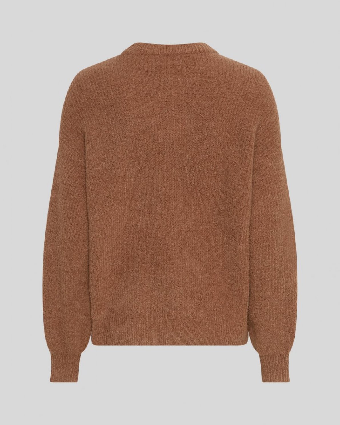 En tidsløs MSCH striktrøje. Lavet af uld og alpaca af høj kvalitet, er du garanteret en striktrøje som holder dig varm, men som samtidig stad er blød og er alsidig. Den oversized struktur gør den til den perfekte ledsager på de køligere dage, men samtidig sikre at du er stilfuldt klædt på. Striktrøjen har løse ærmer med ballon effekt og en generel løs pasform.