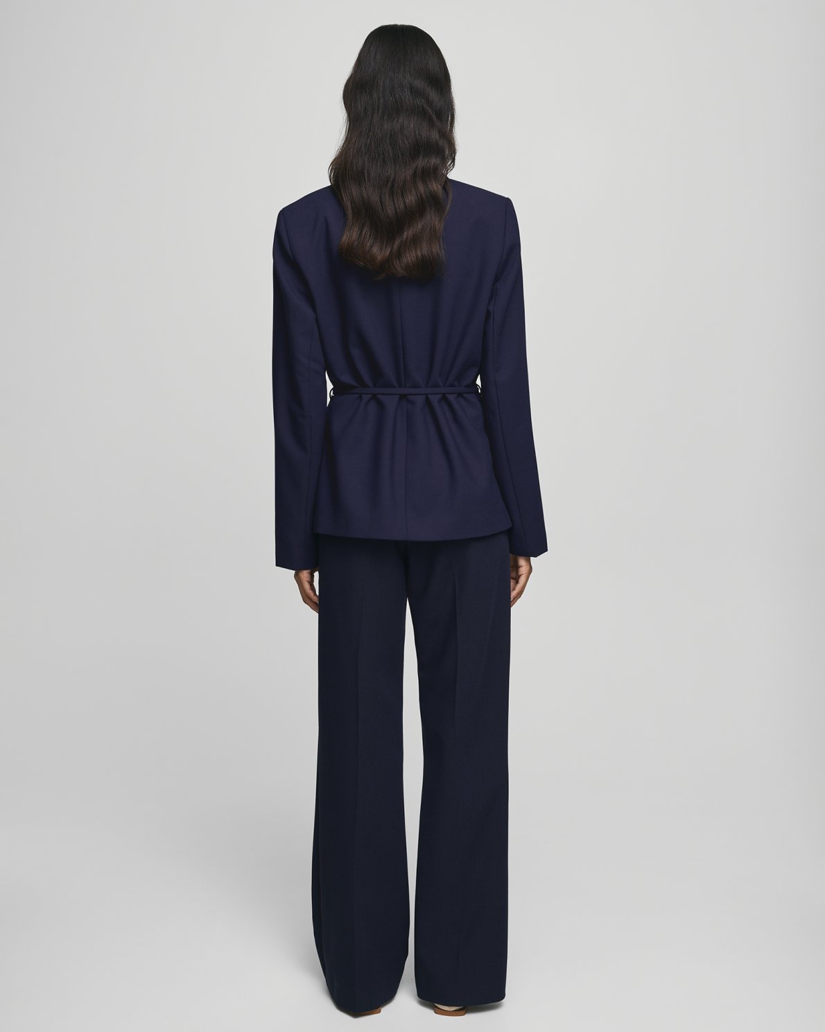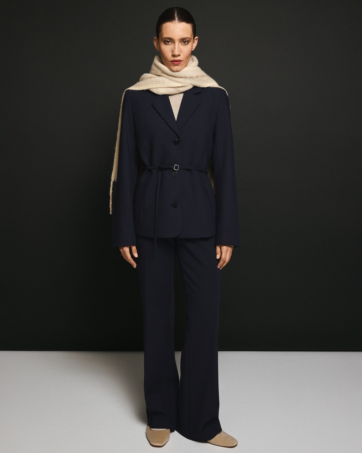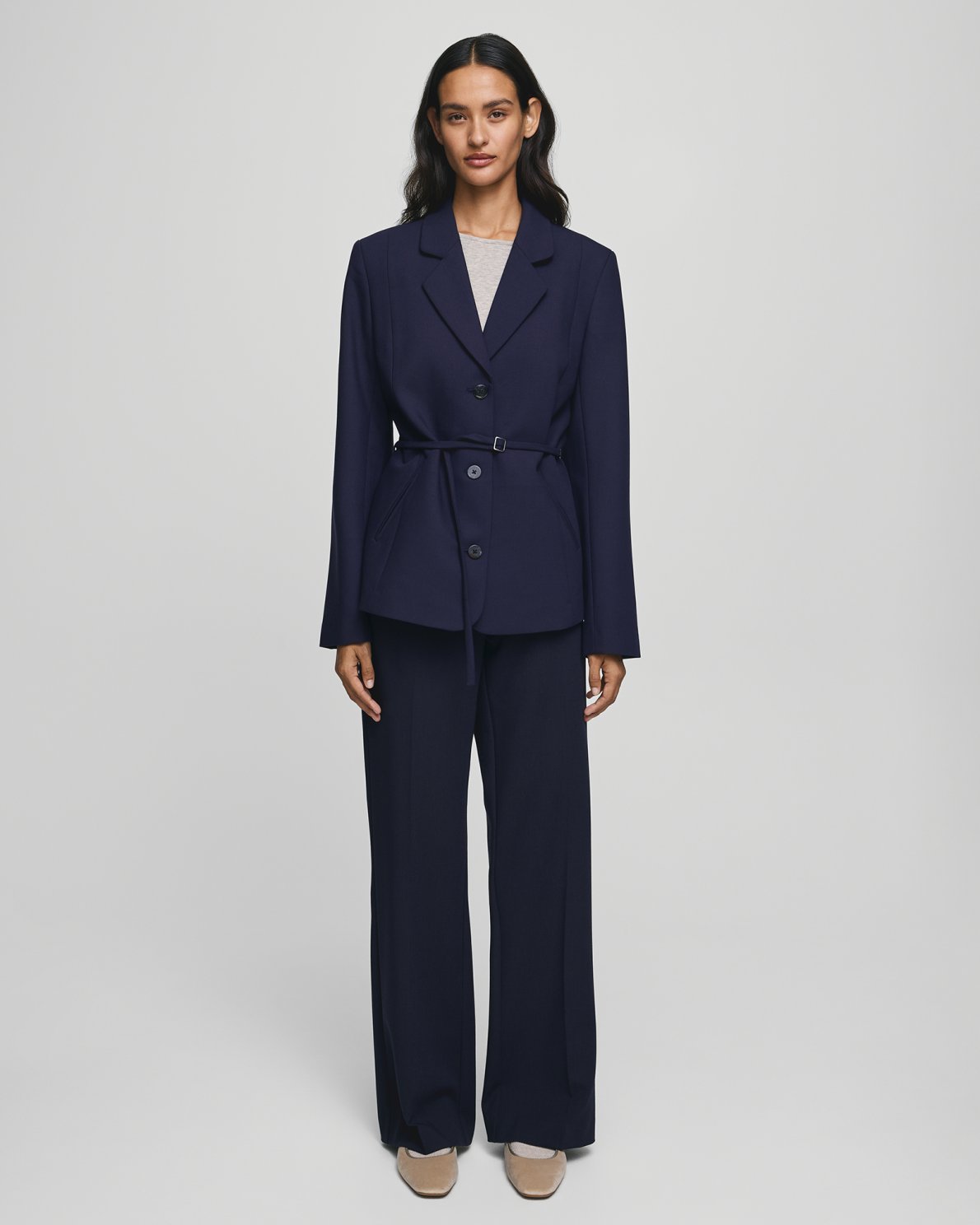 Disse bukser har en slim fit pasform. Modellen er 173cm og bruger en størrelse S. Buksebenene har en diskret flared facon, med almindelig talje og bæltestropper.