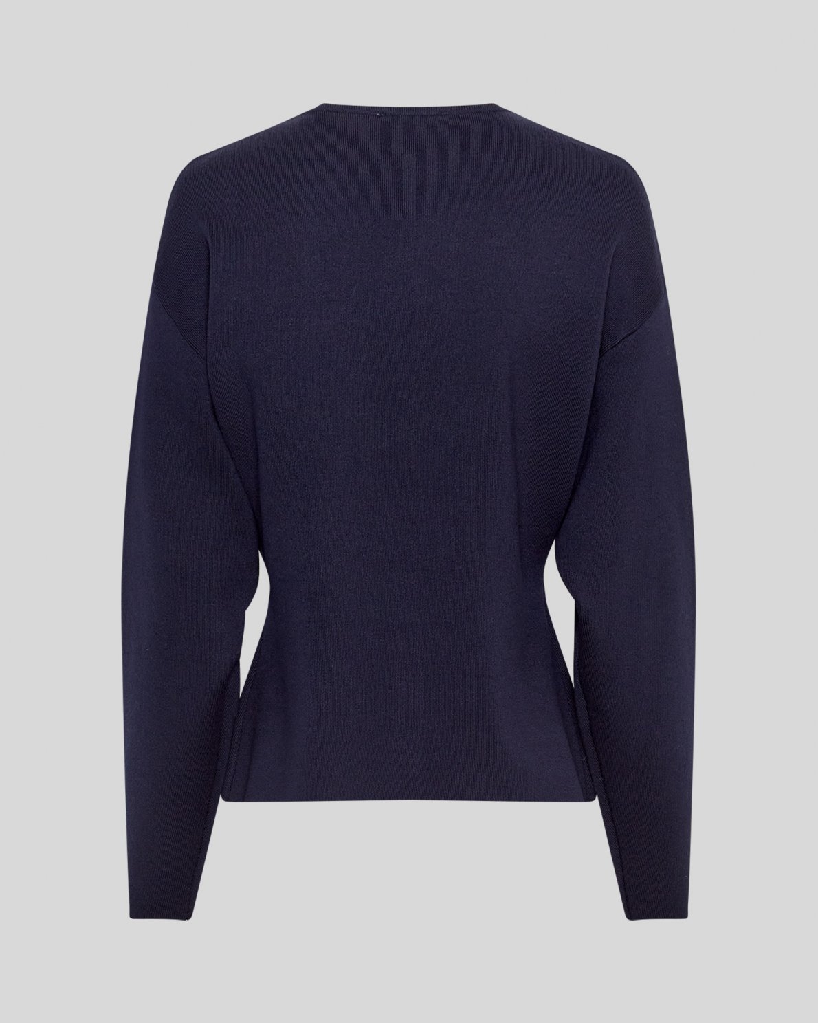 Mirielle cardiganen er en blød, men samtidig fast kvalitet. Cardiganen har en rund halsudskæring med en løs, oversized skulder som giver en voluminøs effekt, og som skaber kontrast til taljen som er tætsiddende. Sammen giver det en flatterende, timeglasfigur. Style den med et par habitbukser, for den perfekte kombination af business og casual.