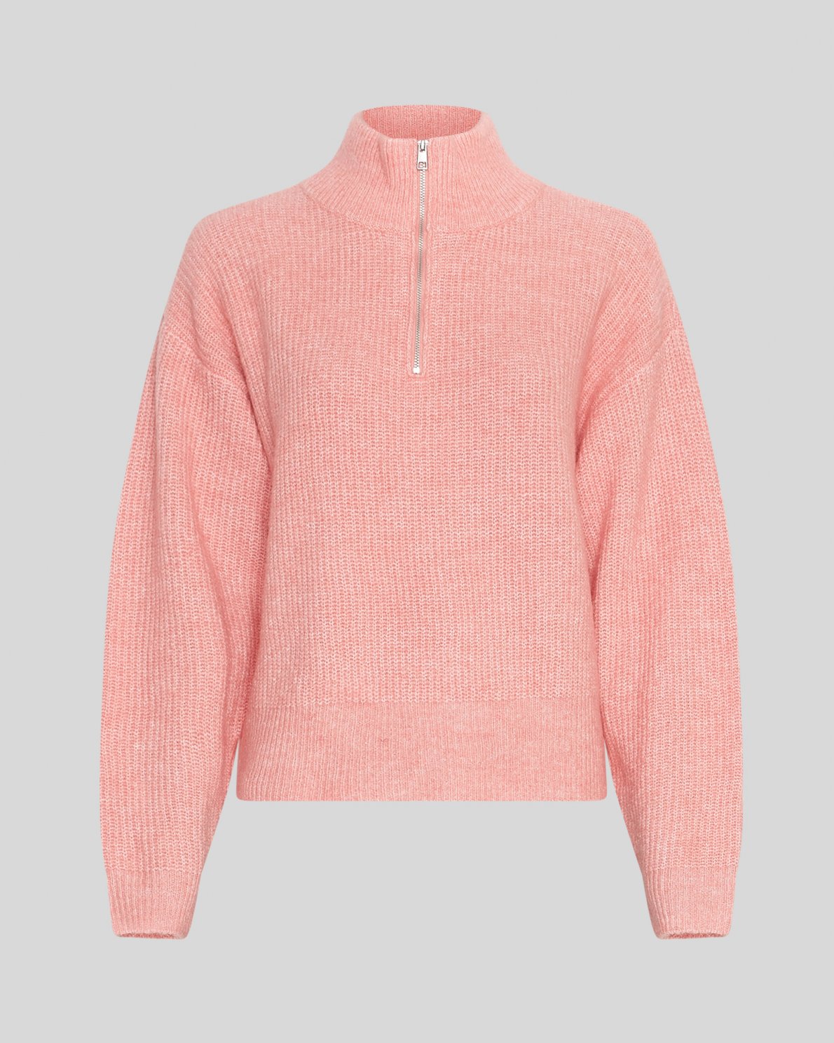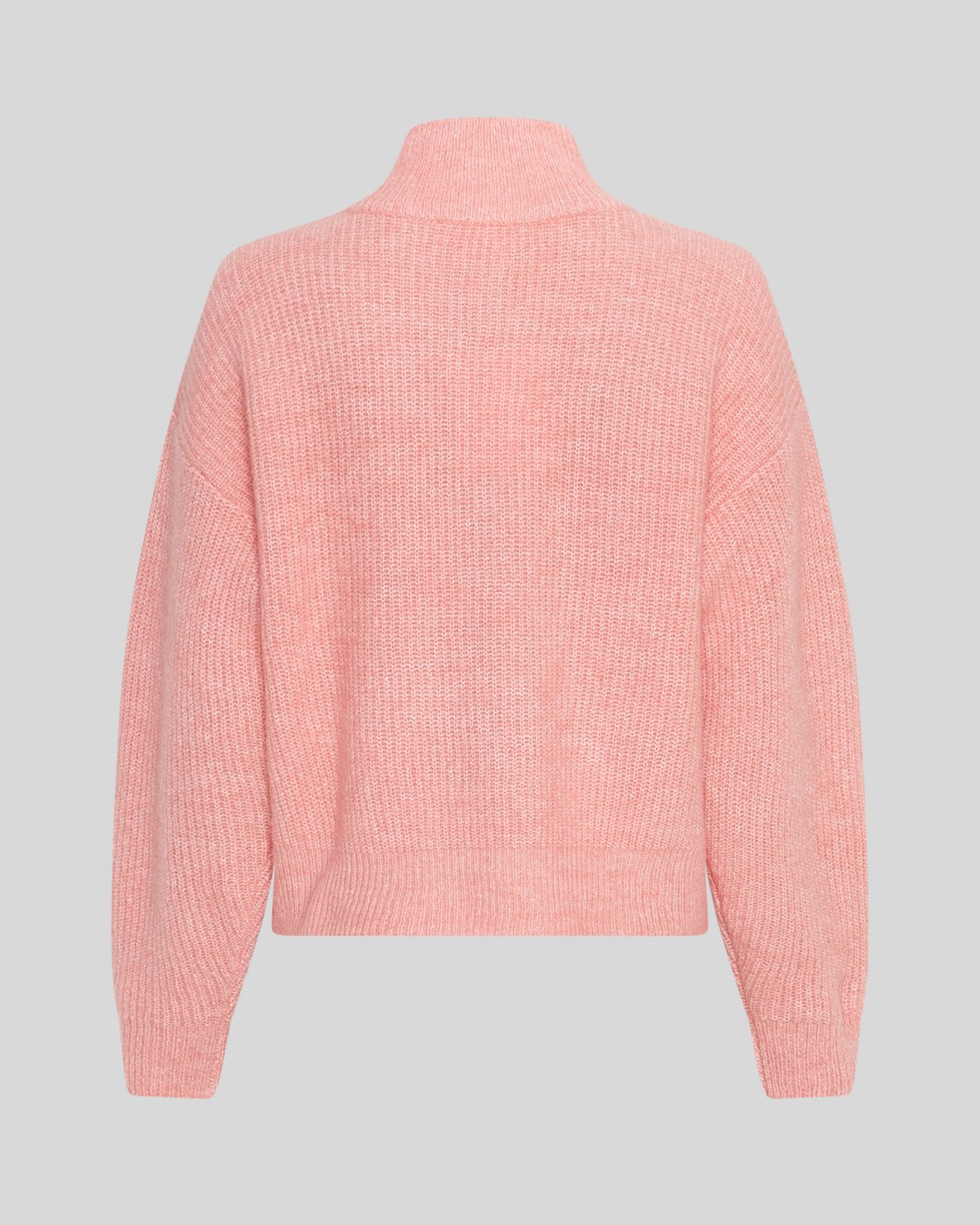 Denne pullover har en boxy pasform. Striktrøjen har en høj hals og en half zip.