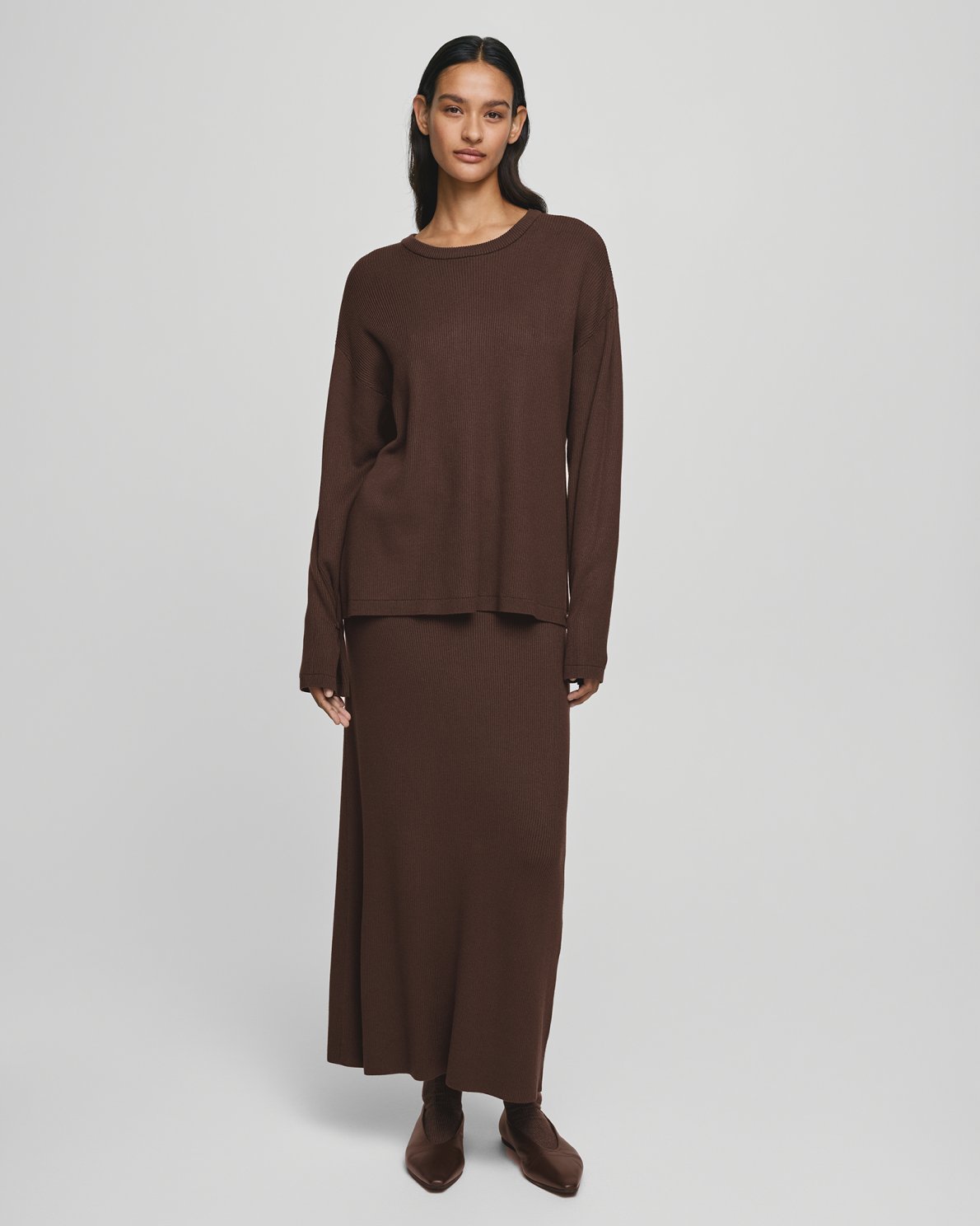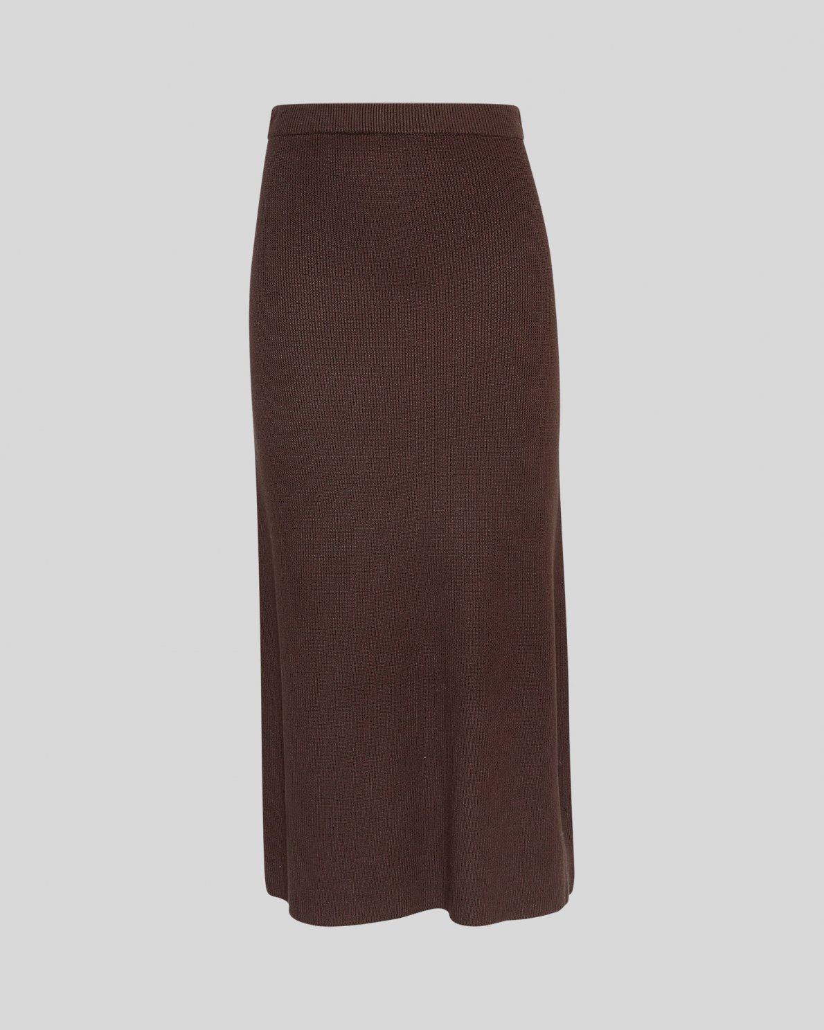 MSCHElfrida nederdelen er en blød, strikket nederdel i et let kvalitet. Nederdelen har en lige pasform, men stadig med god plads til bevægelse. Der er elastik i taljen som sikrer komfort hele dagen.