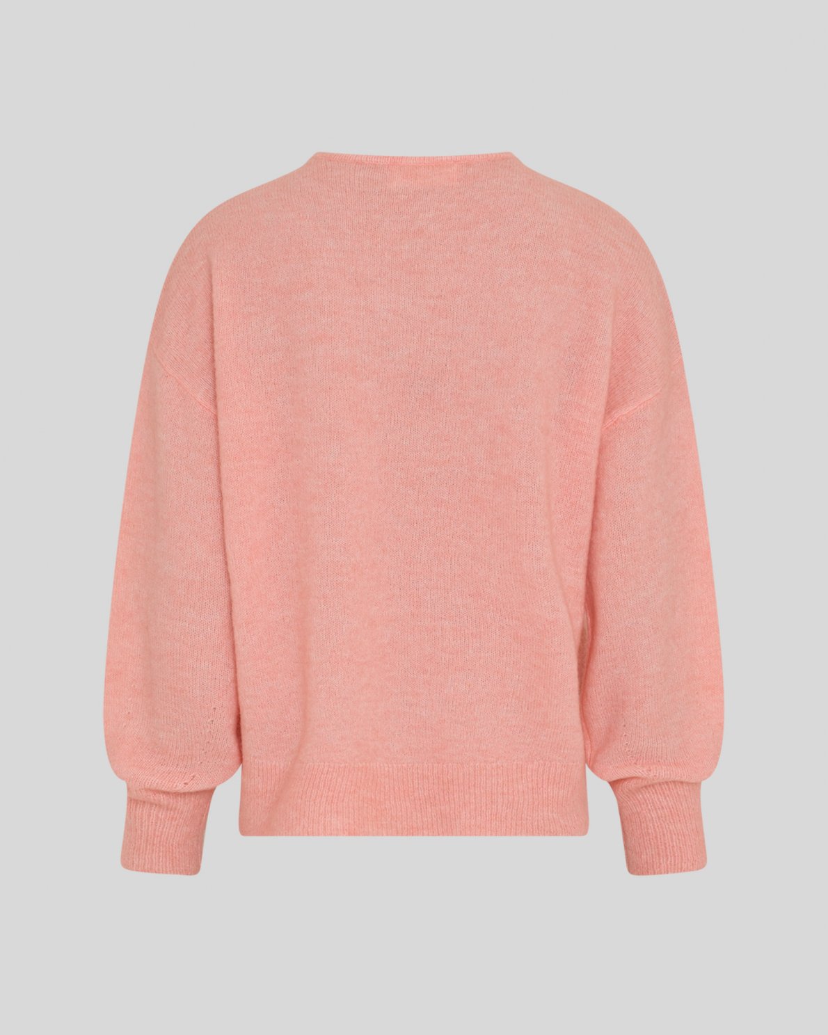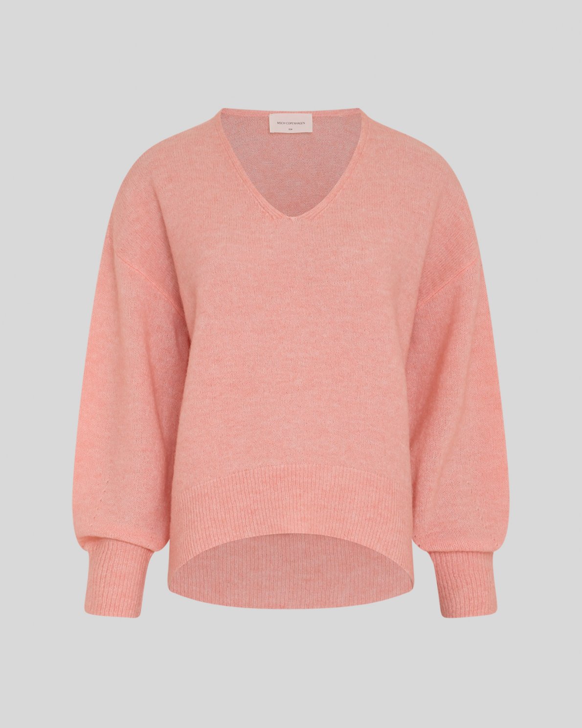 Strikket pullover med v-halsudskæring. Lange ærmer med ribmanchetter og ribkant forneden. Designet med sænkede skuldre.