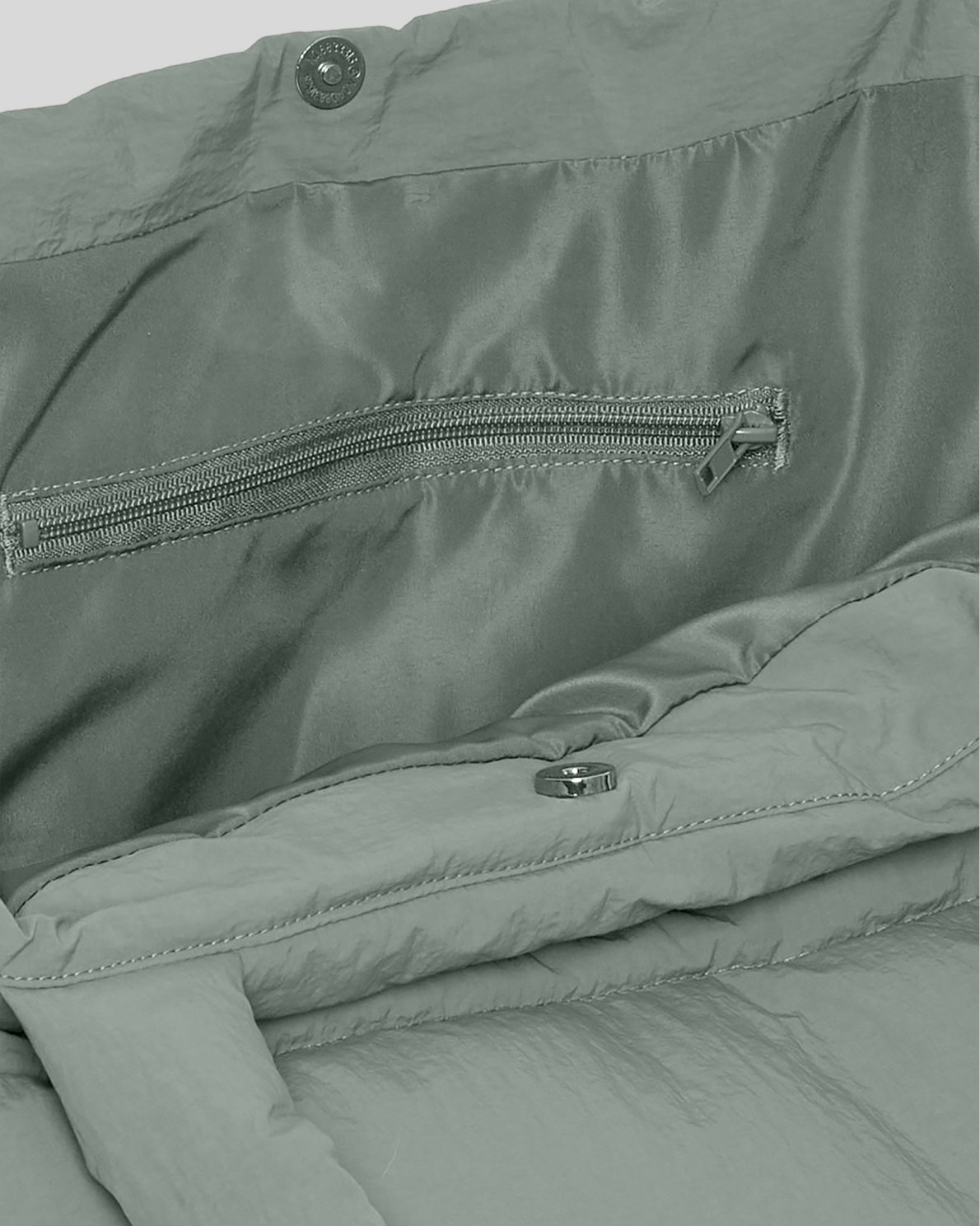 Polstret shopper-taske med stort hovedrum. Tasken har brede skulderstropper, indvendig lynlåslomme og lukning med trykknap.
