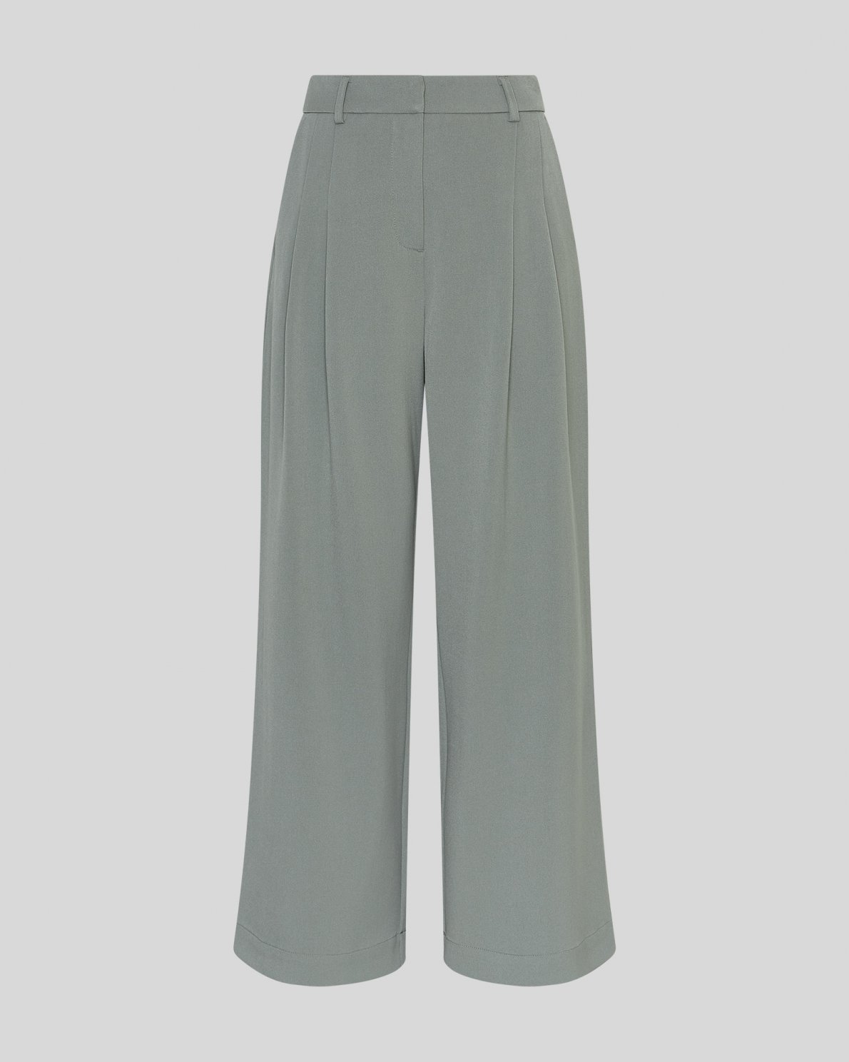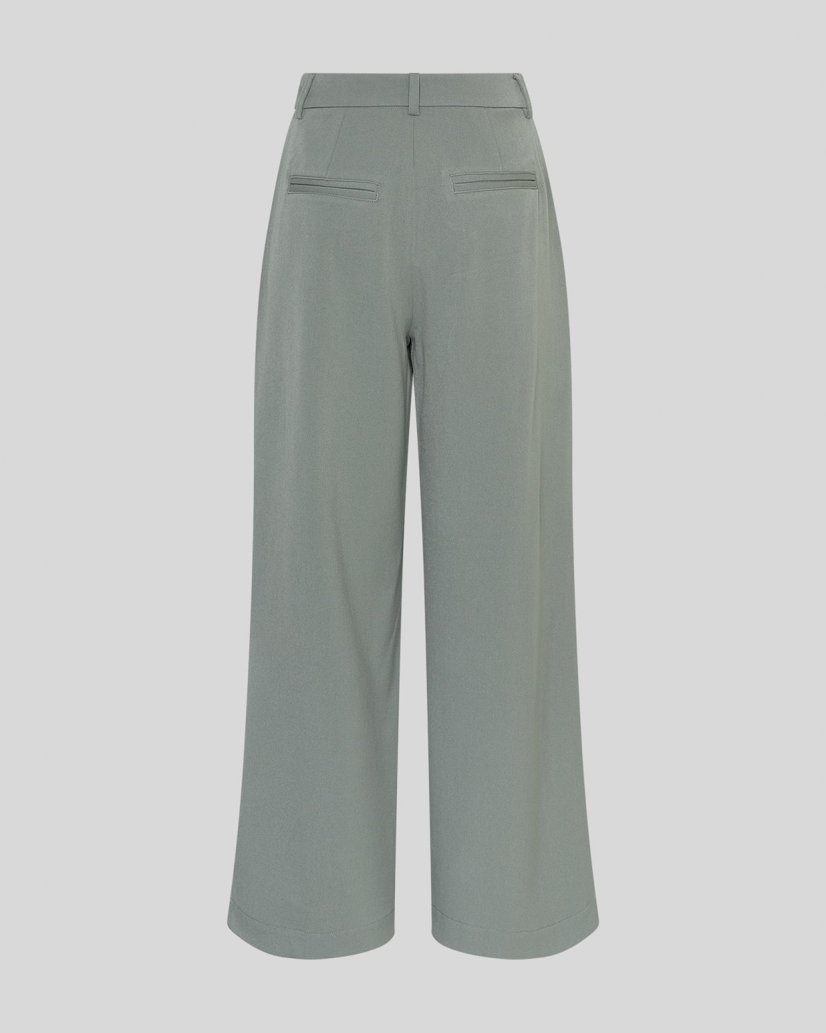 Bukser med høj talje og brede bukseben. Bukserne har fast linning med bæltestropper, lynlås- og hægtelukning samt pressefolder foran. Designet med sidelommer og paspolerede baglommer. Fremstillet i en blød og fleksibel kvalitet.