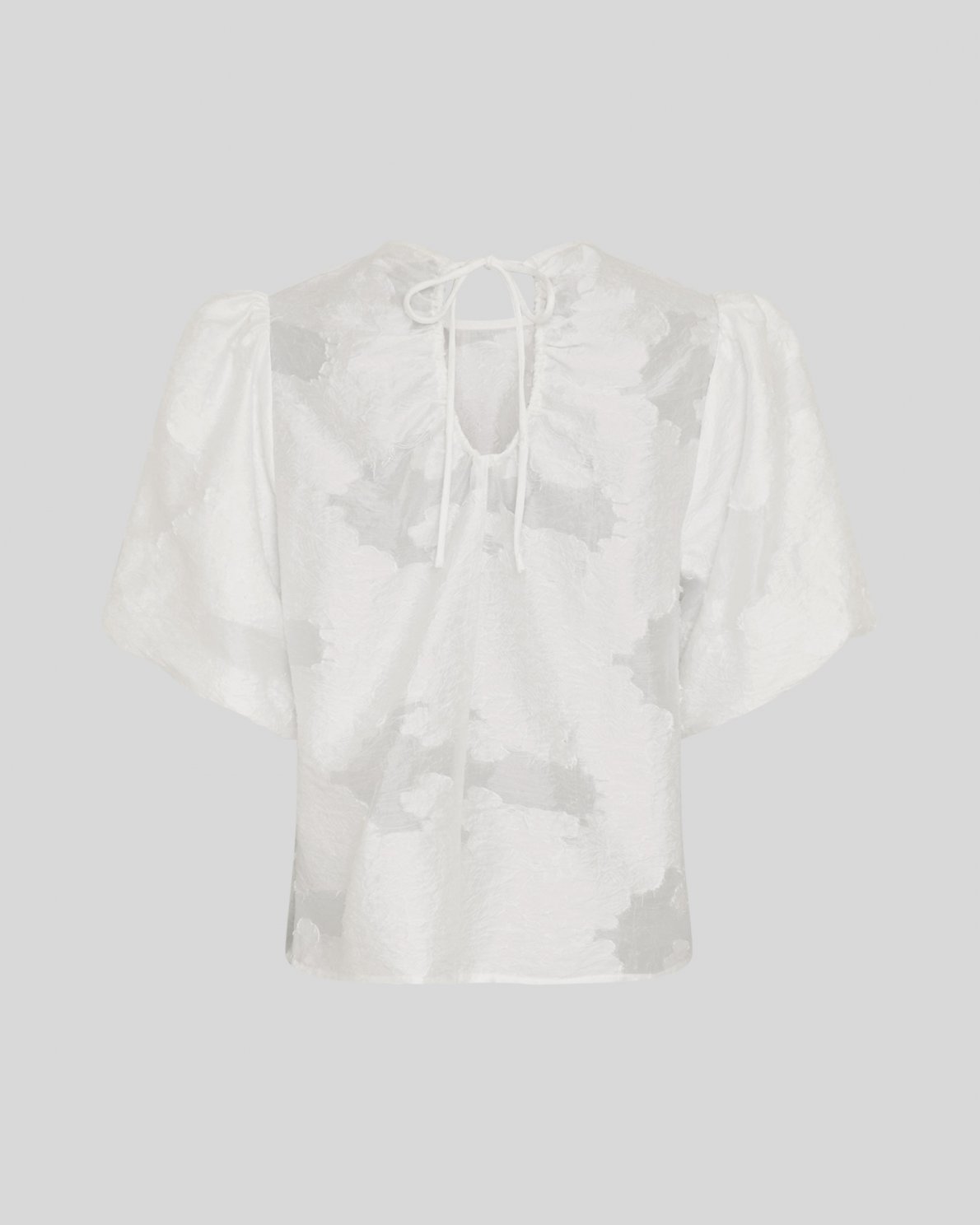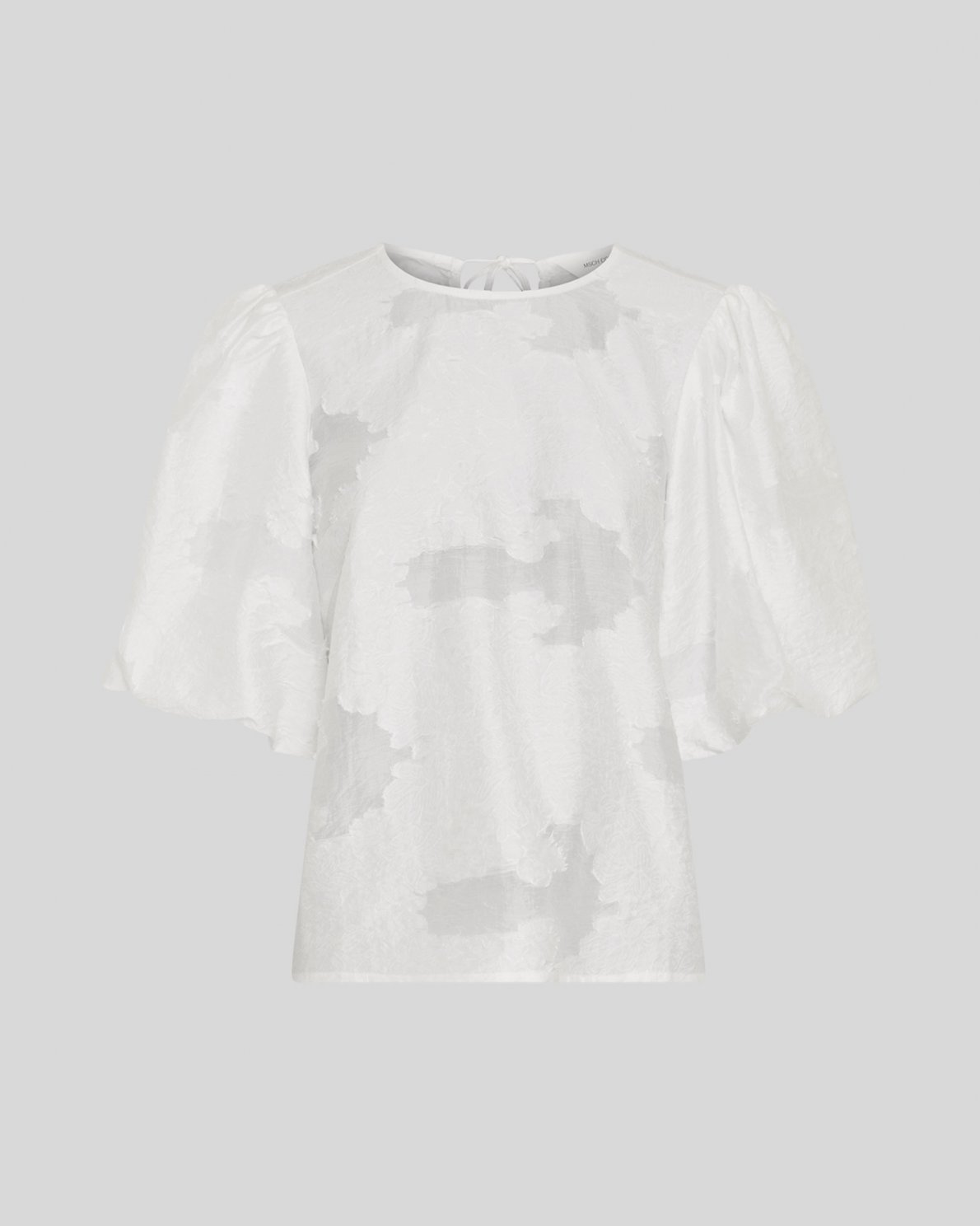 MSCHorkidea 24 Top er en kortærmet top i struktureret materiale. Designet med korte puffærmer og bindelukning i nakken.