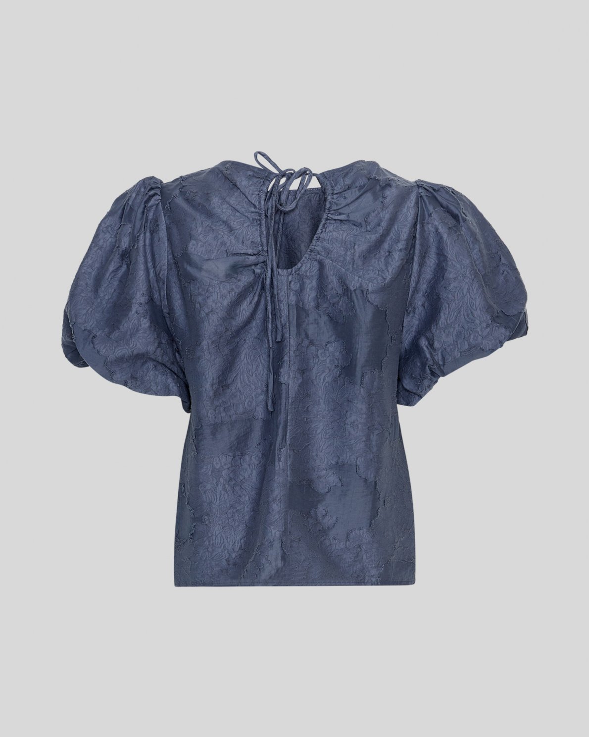 MSCHorkidea 24 Top er en kortærmet top i struktureret materiale. Designet med korte puffærmer og bindelukning i nakken.