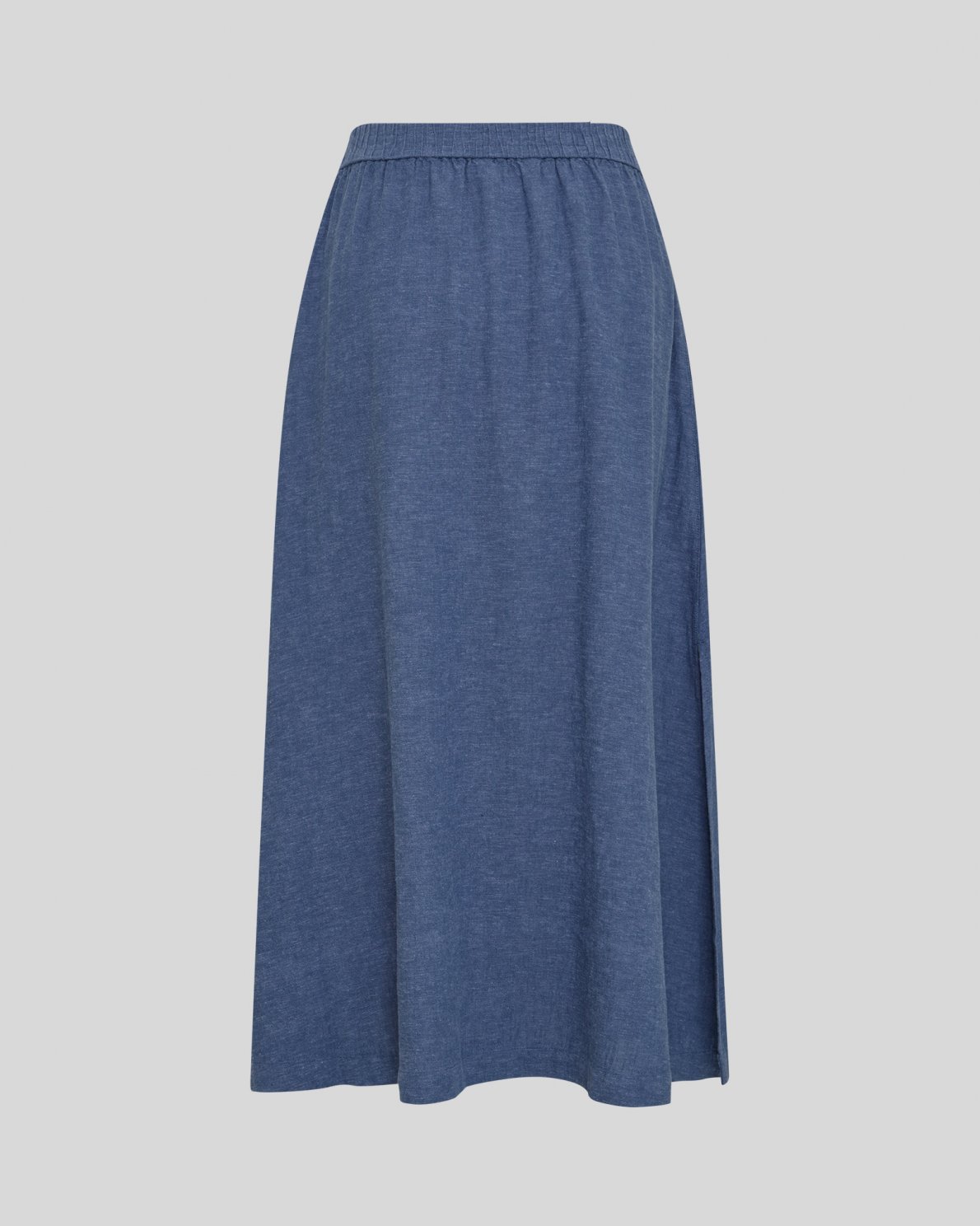 Midi-nederdel i A-form i en blanding af hør og viskose. Designet med høj talje og elastisk linning. Flydende silhuet med sideslids. Almindelig pasform.