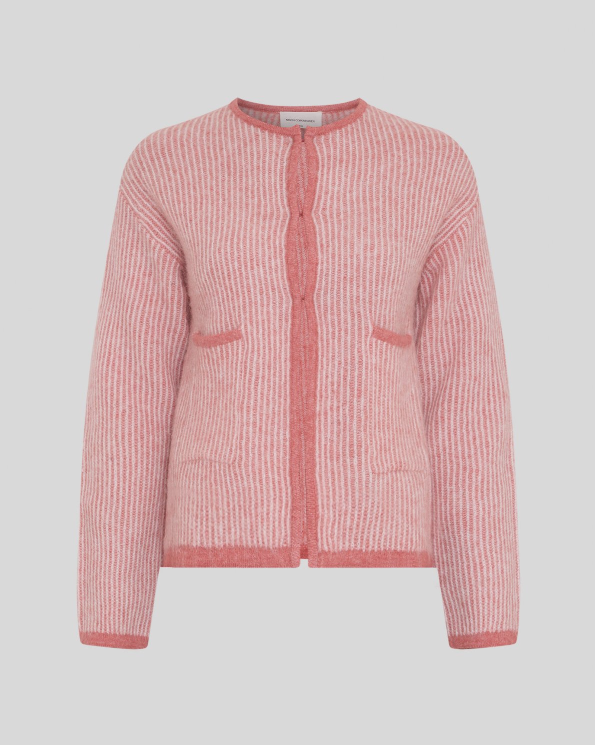 Strikket cardigan i uldblanding med lodrette striber, rund halsudskæring, frontlukning og påsatte frontlommer. Designet i en blød kvalitet med let struktur.