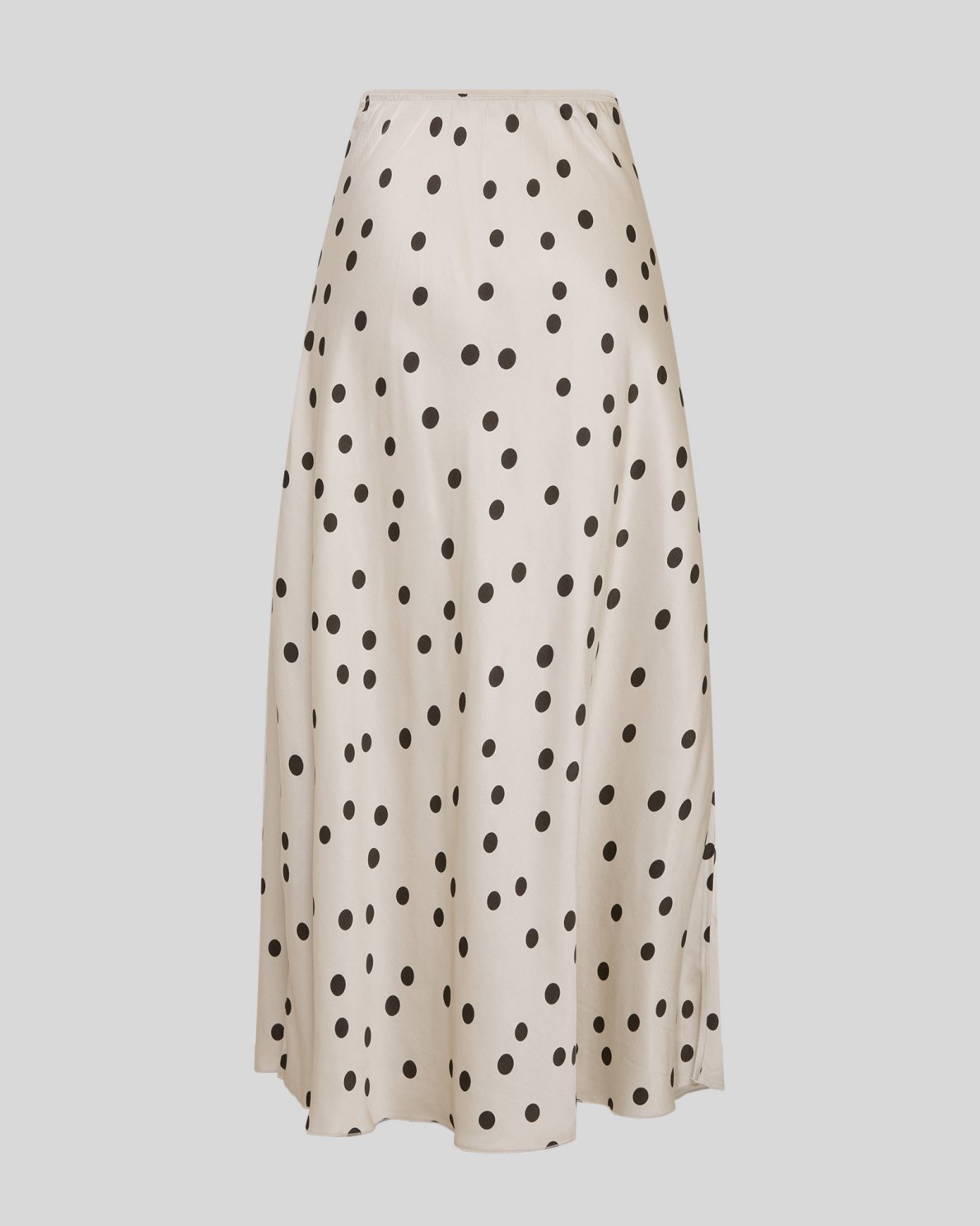 Lang nederdel med all-over prikprint. Let, flydende kvalitet med glat overflade. Elastisk talje og A-formet silhuet med naturligt fald.