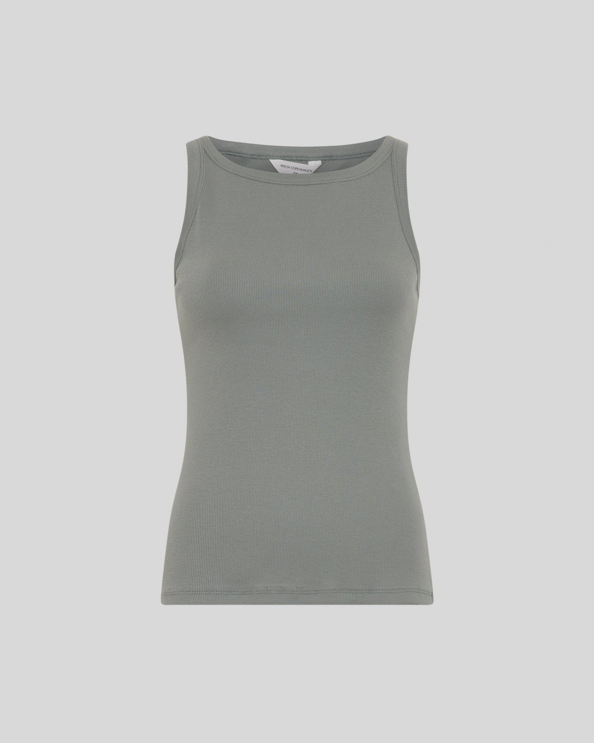 Ribstrikket tanktop i blød bomuldskvalitet med stretch. Designet med rund hals og ærmeløs silhuet. Slim fit.