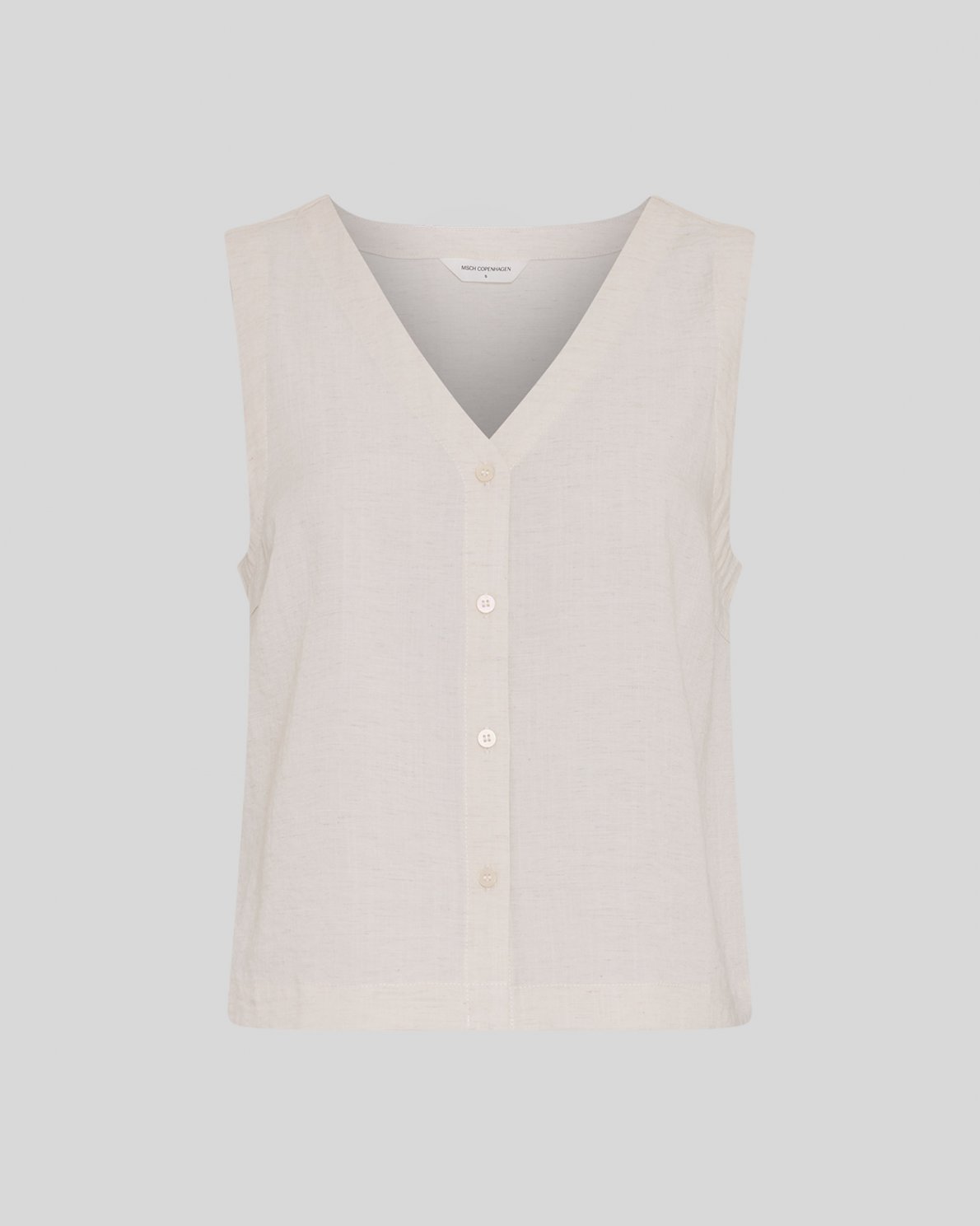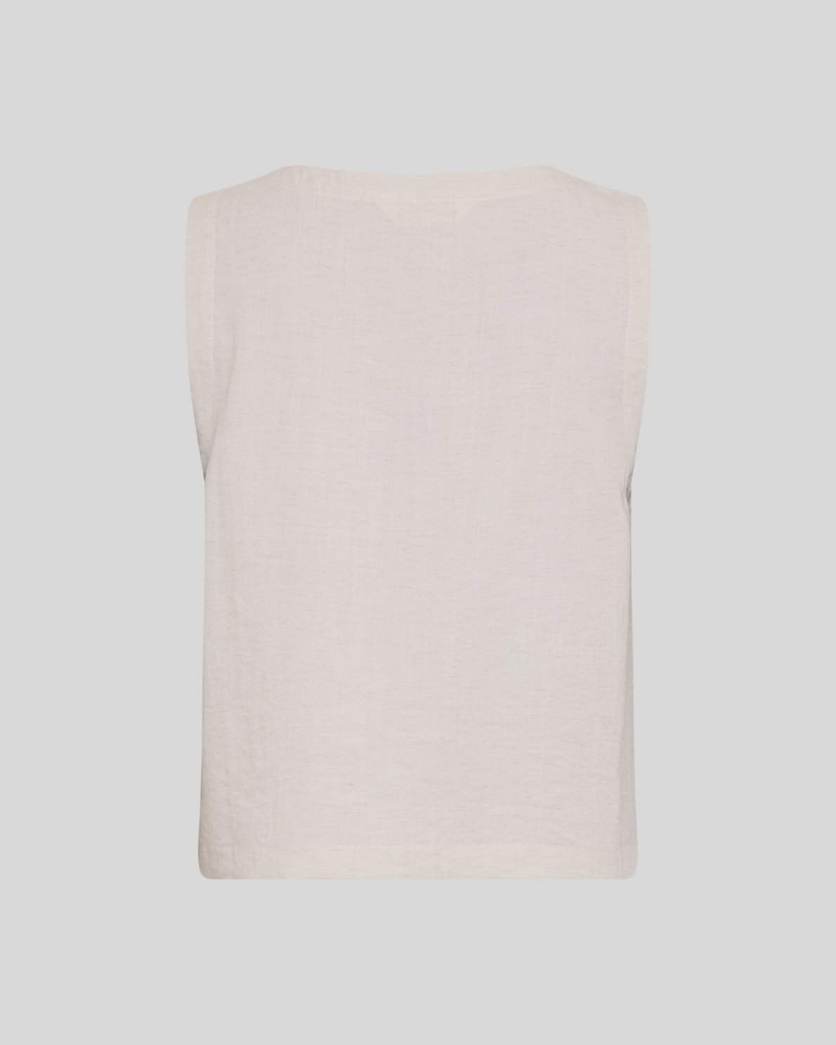 Ærmeløs skjorte i let vævet kvalitet. Designet med V-udskæring og knaplukning foran. Lige silhuet med let struktur i materialet.