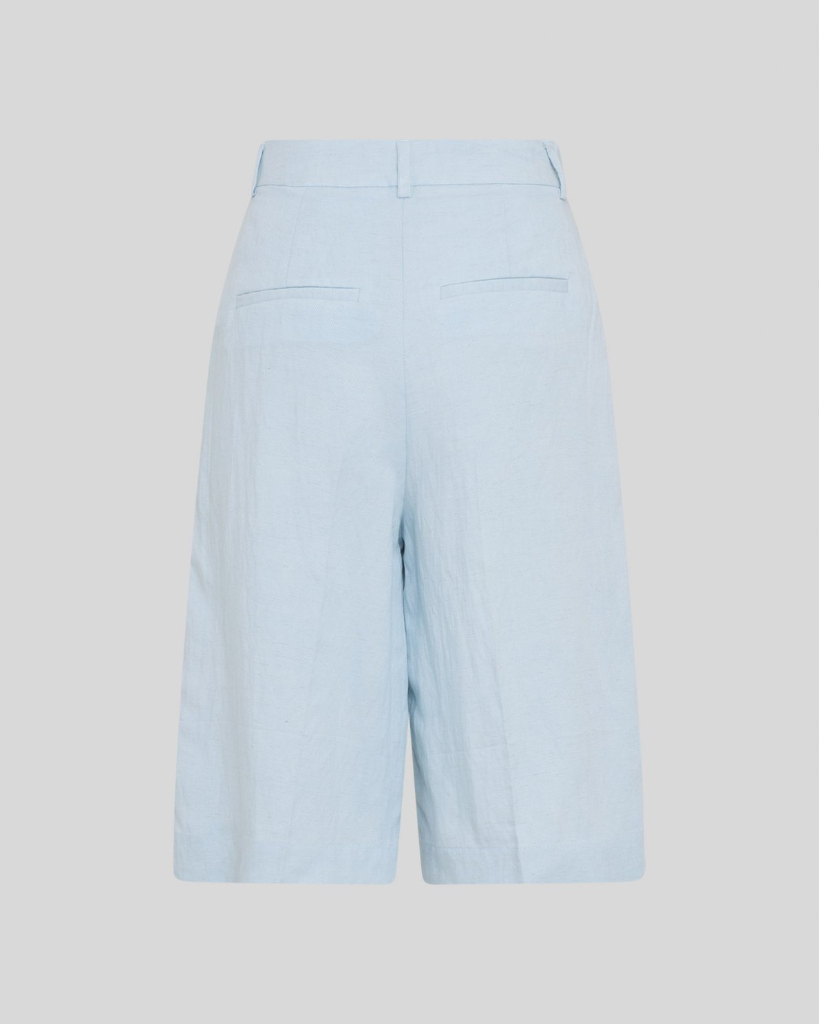 Højtaljede knælange shorts i let vævet kvalitet. Designet med fast linning og bæltestropper. Lukning med skjult lynlås og hægte. Læg foran skaber volumen. Skrålommer foran og paspolerede lommer bagpå. Løs benvidde med knælængde.