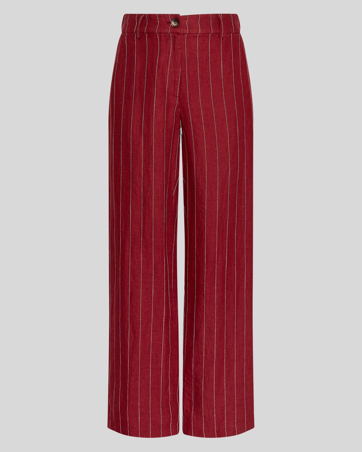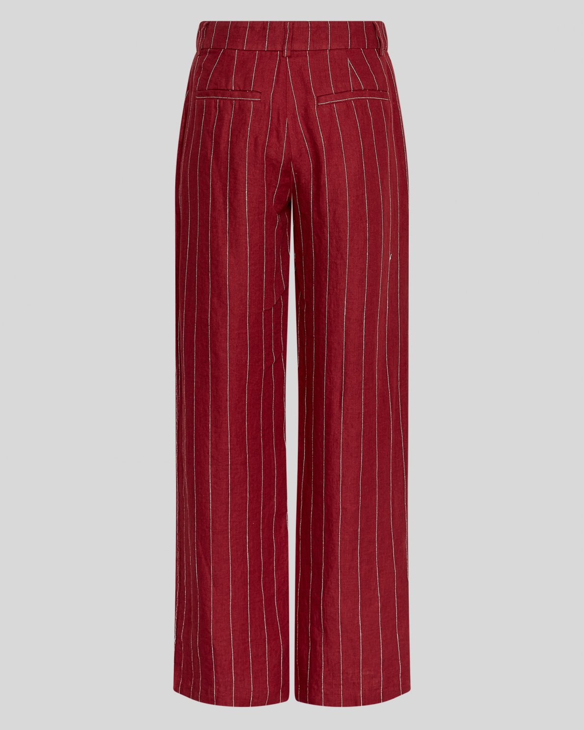 Bukser med lodrette striber, normal talje, bæltestropper og lige ben. Designet med frontlukning og en let struktureret kvalitet.