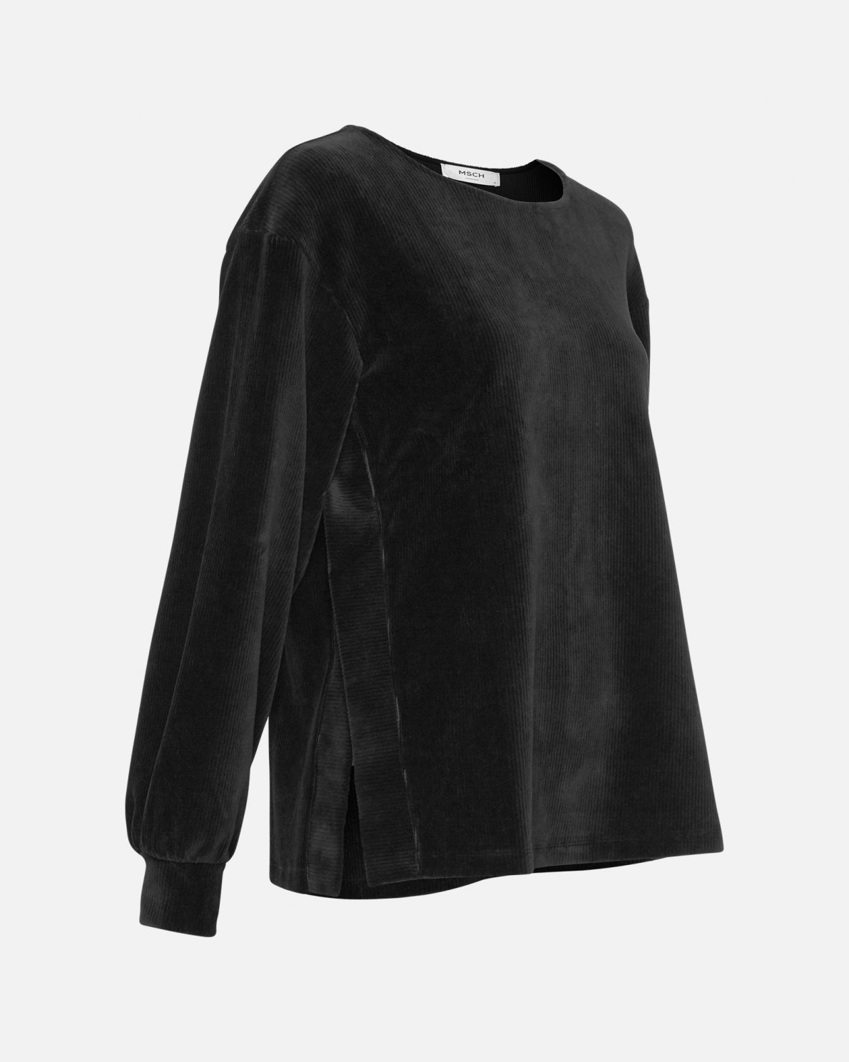 Long sleeved top in corduroy with cuff and side split