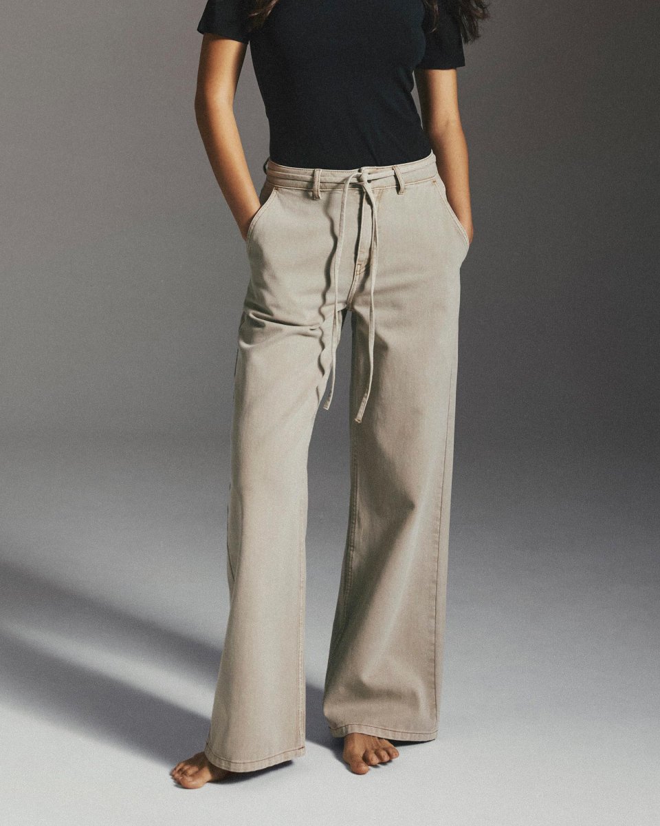 Relaxed fit jeans med mellemhøj talje, normal benlængde og bindebånd i taljen giver en komfortabel og flatterende silhuet. Den mellemhøje talje skaber balance, mens bindebåndet tilfører et feminint og cool touch.